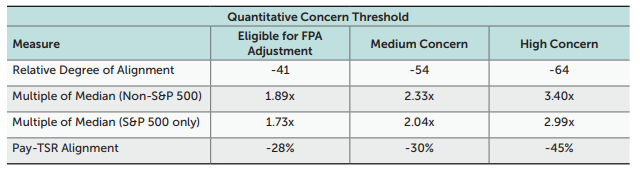 ISS’ concern thresholds for each test for 2026 are presented below: