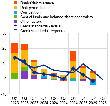 A range of other factors that are not unrelated to the cycle may also help explain why the credit gap indicators remain negative. Heightened risk perceptions and higher bank funding costs, combined with declining excess liquidity, have played a role. In addition, pressures from supervisory and regulatory requirements to maintain solid balance sheets amid rising uncertainties, alongside the goal of supporting financial stability, have kept credit standards tight through the cycle, even as monetary policy has been eased in recent quarters. At the same time, financing from non-bank lenders has remained contained since the start of the monetary policy tightening, despite their secular increasing role in funding the real economy.