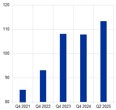 Households currently benefit from a strong labour market, a low and stable inflation outlook and favourable conditions in the housing markets. However, those working in certain sectors, in particular manufacturing, are increasingly worried about the negative effects of tariffs, expecting income declines and tighter credit access. As a result, they anticipate submitting fewer credit applications (Chart 9, panel A). At the same time, lower-income households are starting to report increasing difficulties in meeting mortgage payments (Chart 9, panel B). Higher financial distress rates of households pose a downside risk for the transmission of the recent interest rate cuts.[28]