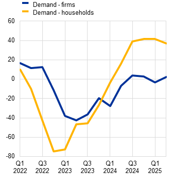 Changes in demand for loans to firms and households |